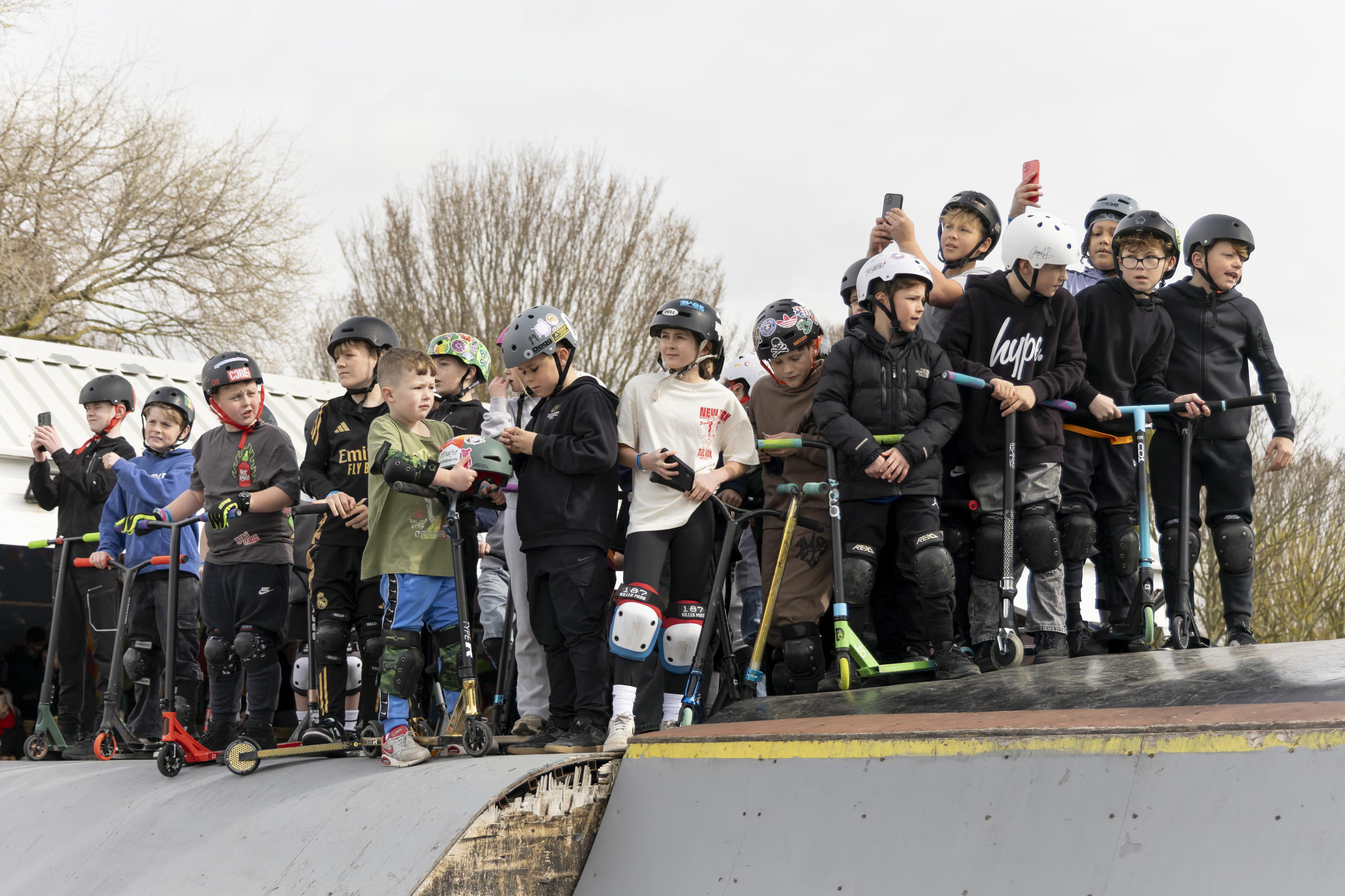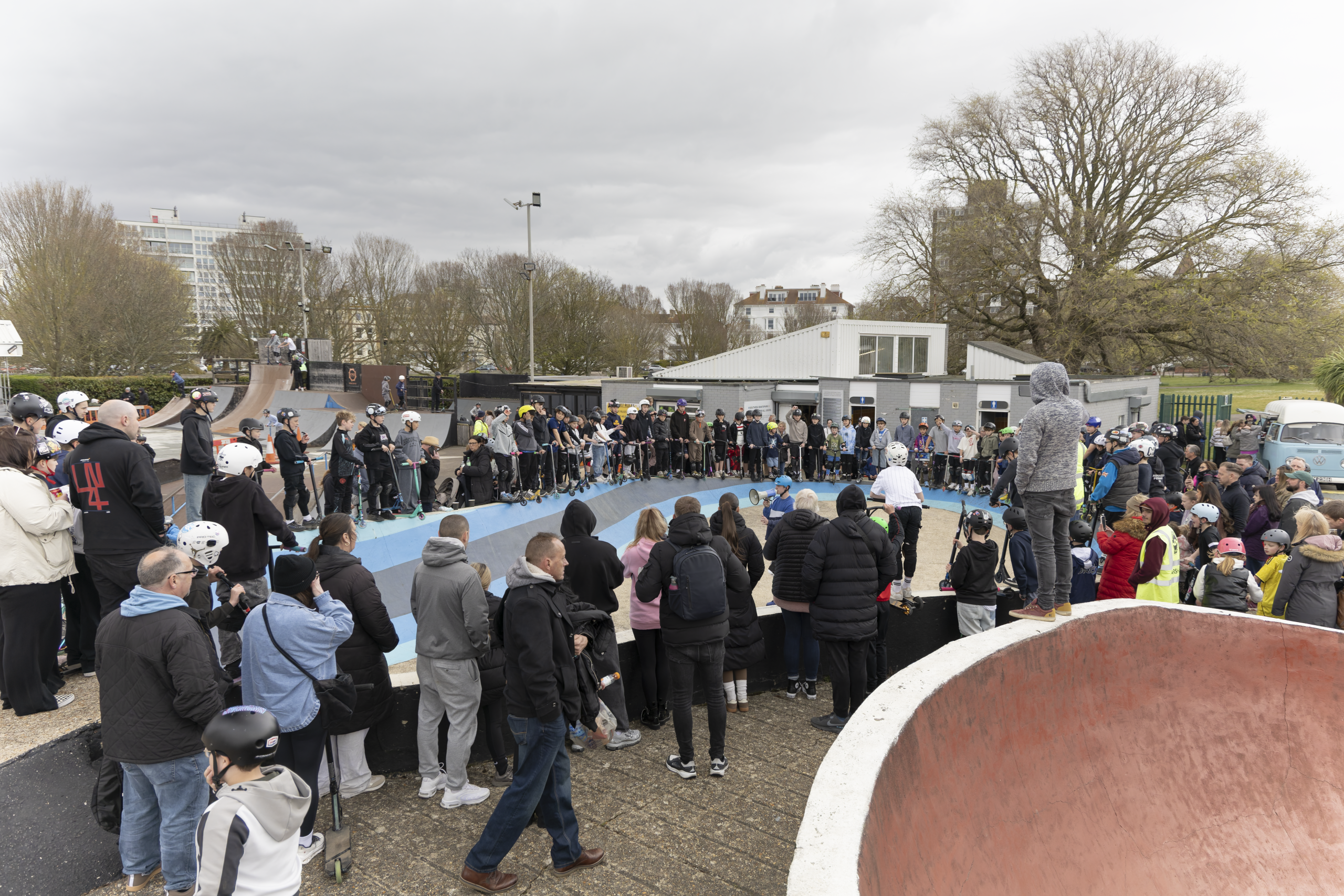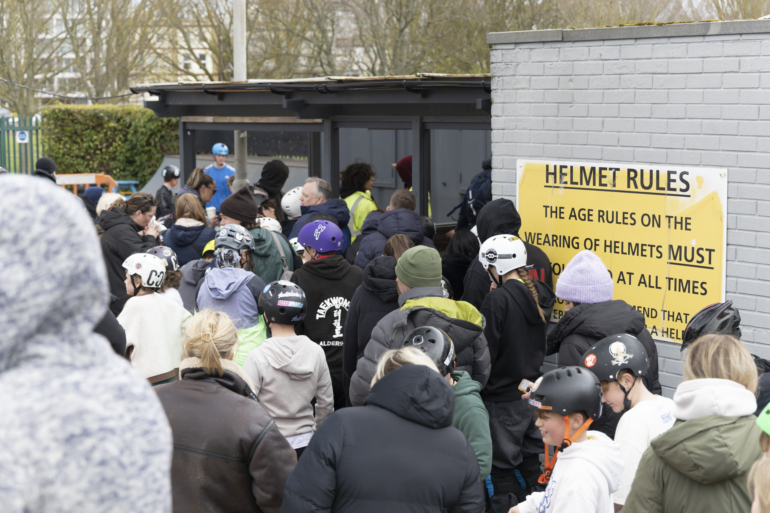The skatepark staff and trustees had got there bright and early and were working with the queue to get people their wristbands as fast as possible. They then marshalled in the park to ensure everything was as safe as possible, and also supported with first aid and kindness when needed. The staff spoke with and helped the crowd when needed, encouraged the young scooter riders with their tricks and helped in the skatepark store. We’re really proud of the hard work Effraim and the team did with warmth and enthusiasm, from start to finish throughout the day.